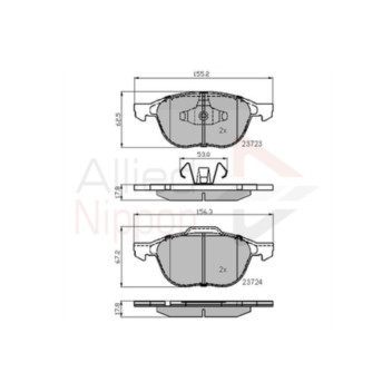 | Size mm | L.:155.2;L.2:156.3;W.:62.5;W.2:67.2;Thickness: 17.8 |