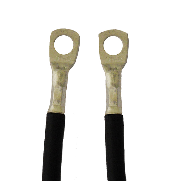 Fully insulated battery cable with 8mm ring terminals. 30 inches long.