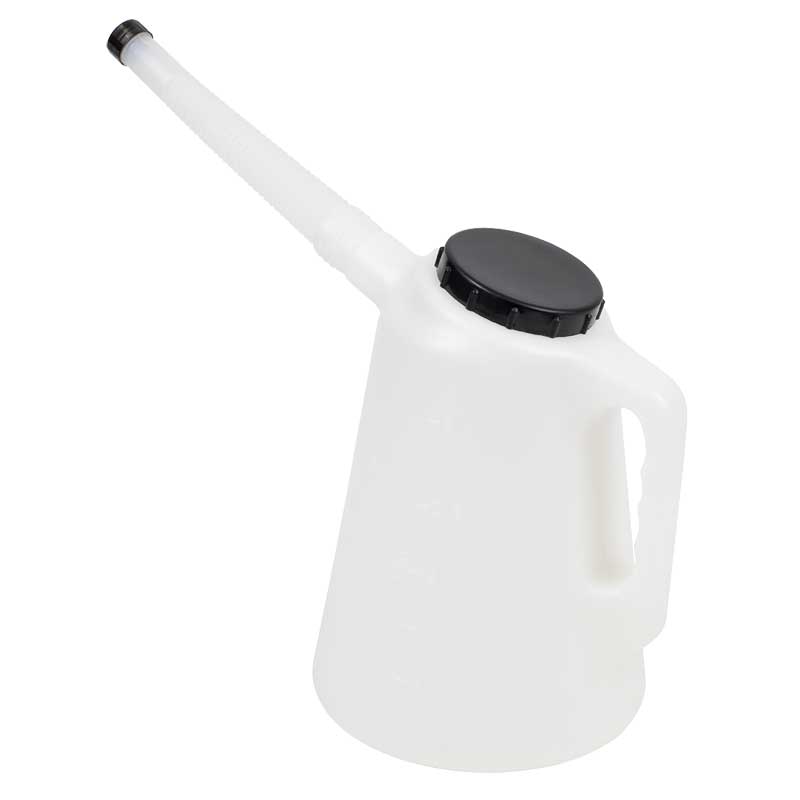 Sealey 3 Litres Flexible Spout Jug with watertight removable lid and spout cap. Polyethylene jug resistant to oil, fuel and most acids.
