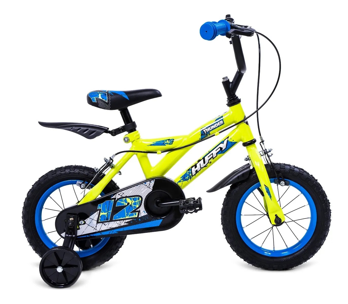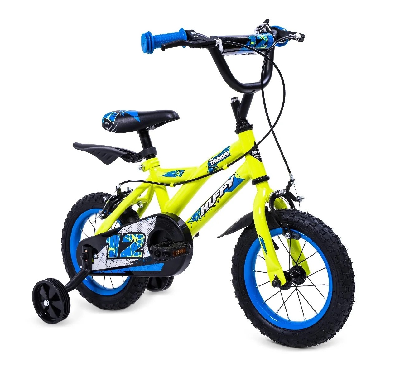 The Huffy Pro Thunder Kids BMX Bike is designed for safety, comfort and fun. Durable tyres on black rims, padded ATB saddle with integrated seat post, and comfortable grips for a smooth ride. Perfect for everyday rides for children aged 3-5 years. Designed to help build confidence for developing riders with a single-speed, adjustable saddle, adjustable handlebars and stabilisers.