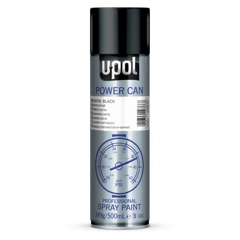 Achieve a sleek, professional satin black finish with U-Pol Power Can Satin Black. This aerosol spray paint is designed for a smooth even coverage, making it perfect for automotive, DIY and industrial applications. A high build topcoat for finishing primed surfaces to achieve a satin finish.
