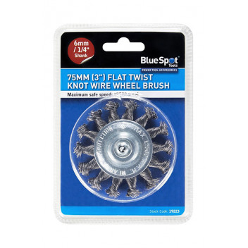 Blue Spot 75mm Flat Twist Knot Wire Wheel Brush is ideal for the removal of dirt, paint, rust, scale and more from ferrous metals. Twisted steel filaments provide quick and efficient cleaning action. Manufactured from hardened steel wire for increased durability.