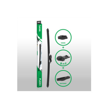Lucas AirFLEX+ Multi Fit Blades feature an aerodynamic centre spoiler for increased down force and performance at higher speeds. Natural rubber compounds that resist both high and low temperatures with a graphene coating for smoother and quieter performance. Includes interchangeable adaptor system to fit most vehicles.